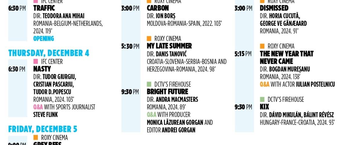 Traffic Directed by Teodora Ana Mihai Romania, Belgium, Netherlands, 2024, 119 min In Romanian, Dutch, English, with English subtitles OPENING Wednesday, December 3, 6:30pm, IFC CenterĀ TICKETS Cristian Mungiu (4 Months, 3 Weeks and 2 Days) penned this loose adaptation of the notorious 2012 art robbery, where Romanian migrants stole paintings by Monet, Gauguin, … Continue reading 19th Making Waves: New Romanian Cinema